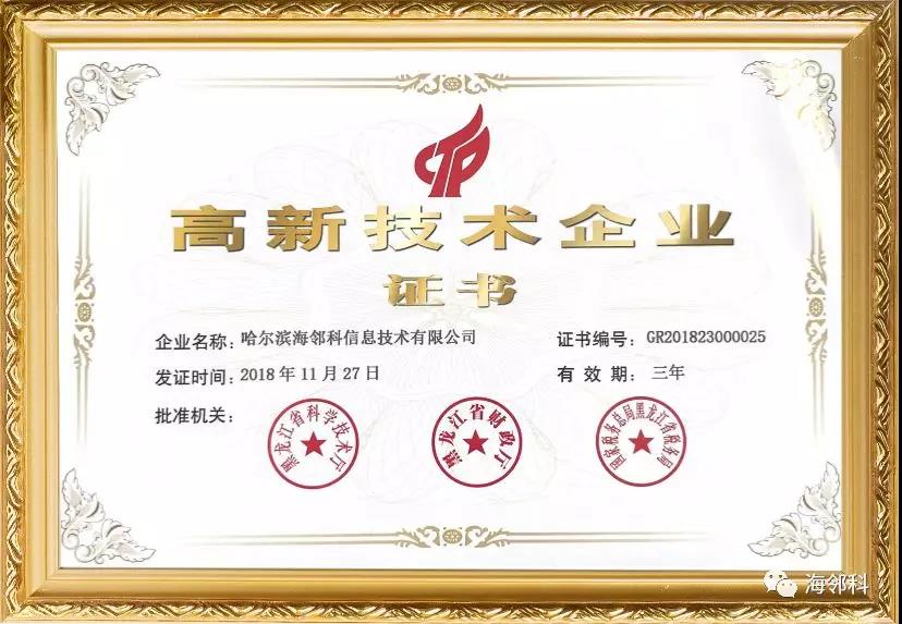 近日,繼深圳海鄰科總公司獲得2017年國家高新技術(shù)企業(yè)資格認(rèn)定以來,旗下哈爾濱海鄰科子公司又獲得2018年國家高新技術(shù)企業(yè)資格認(rèn)定。