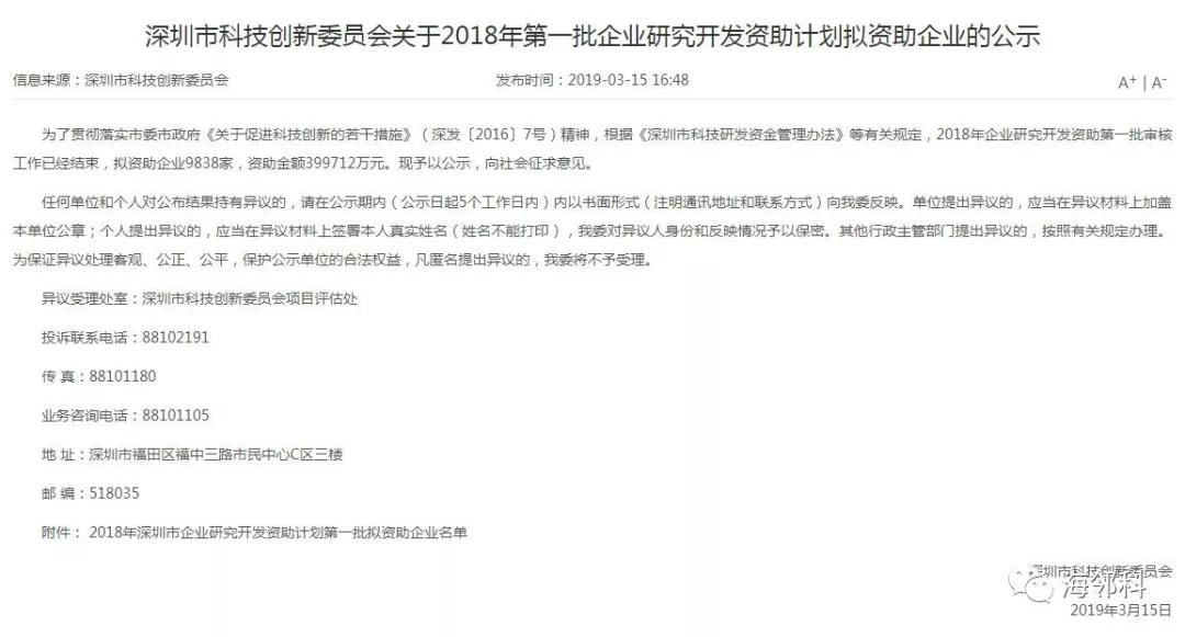 近日,深圳市科技創(chuàng)新委員公布了2018年第一批企業(yè)研究開發(fā)資助計(jì)劃擬資助企業(yè)名單。海鄰科憑借在扎實(shí)的技術(shù)研發(fā)創(chuàng)新和大量的產(chǎn)品成果轉(zhuǎn)化,從層層遴選脫穎而出,獲得了2018年政府“企業(yè)研究開發(fā)資助”的專項(xiàng)資助。
