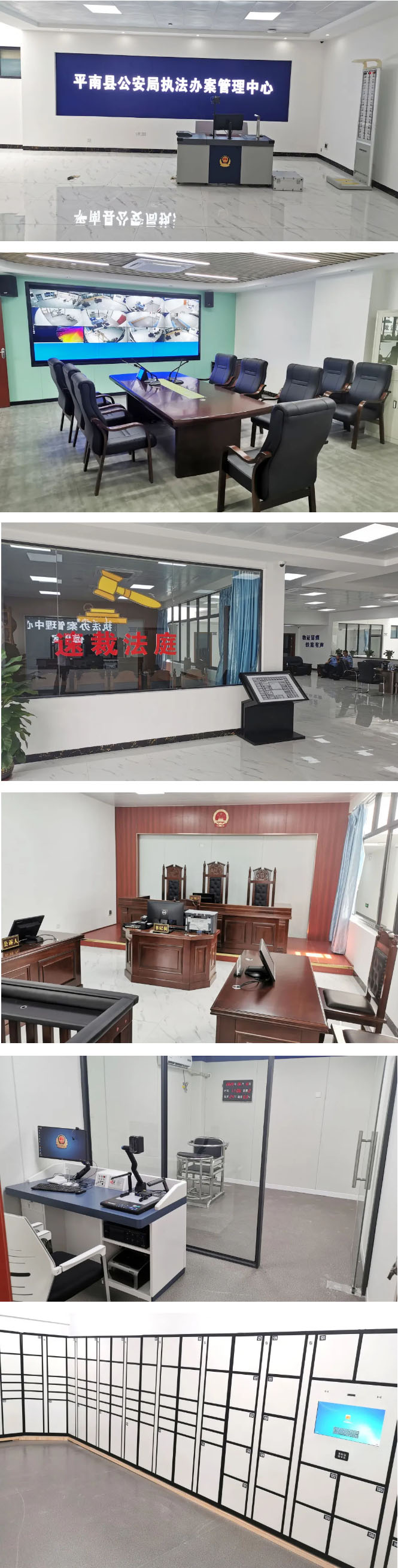 平南縣公安局智慧執(zhí)法辦案管理中心建有縣公安局執(zhí)法辦案管理中心、涉案財物管理中心、案件管理中心、政務(wù)服務(wù)大廳及樂群派出所等5個公安基礎(chǔ)項目。依托海鄰科先進技術(shù)和成熟經(jīng)驗,以嚴格規(guī)范公正文明執(zhí)法為主線,以解決執(zhí)法突出問題為導(dǎo)向,構(gòu)建執(zhí)法管理、辦案區(qū)管理、案件卷宗管理和涉案財務(wù)管理“四位一體”執(zhí)法管理機制,打造“系統(tǒng)嚴密、規(guī)范高效”的執(zhí)法監(jiān)督管理體系。通過對“案”、“人”、“物”、“卷”、“場”、“視”,六要素的管理,打通“監(jiān)”、“管”、“警”、“辦”、“查”、“統(tǒng)”六環(huán)節(jié),形成對案件的沙盤式管理新模式,實現(xiàn)全要素、全過程、全領(lǐng)域管理和“閉環(huán)式”全覆蓋管控。同時,與法院合作,在辦案中心建設(shè)有速裁法庭,可以快速處理符合速裁條件的案件,提升效率。
