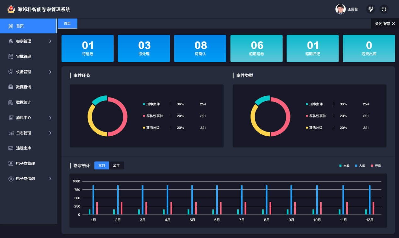 針對已完結的案件、久偵未決的案件卷宗,系統(tǒng)自動提示民警將卷宗送到統(tǒng)一保管庫房,由庫管員集中保管、科學存儲。