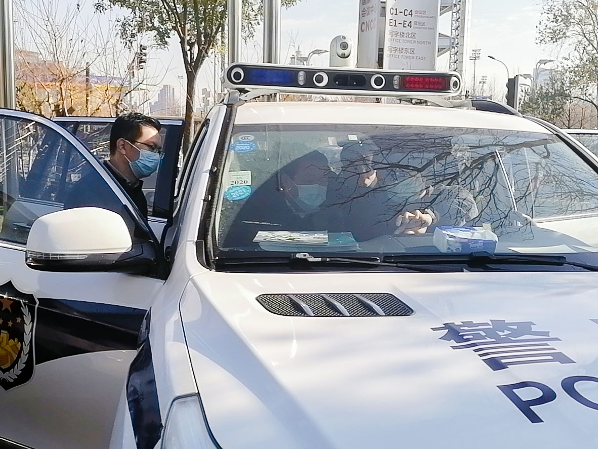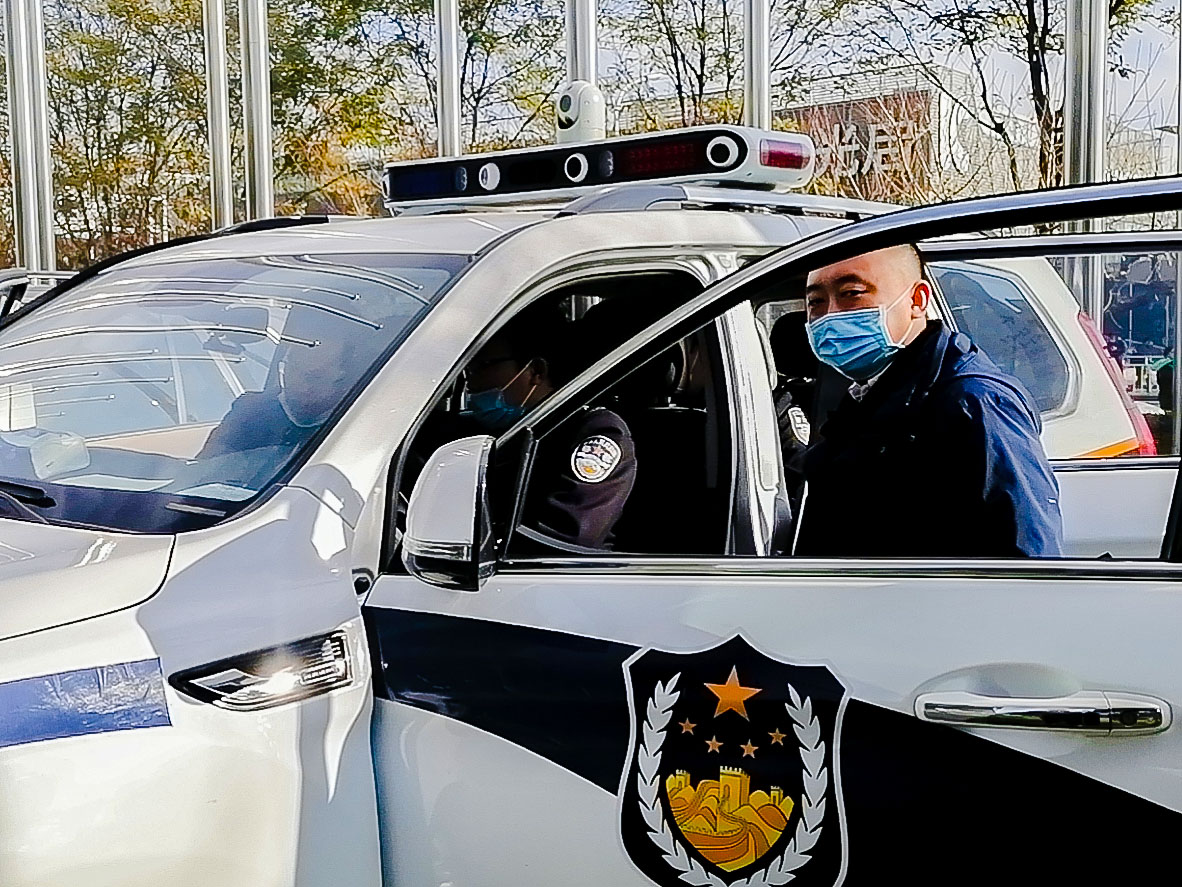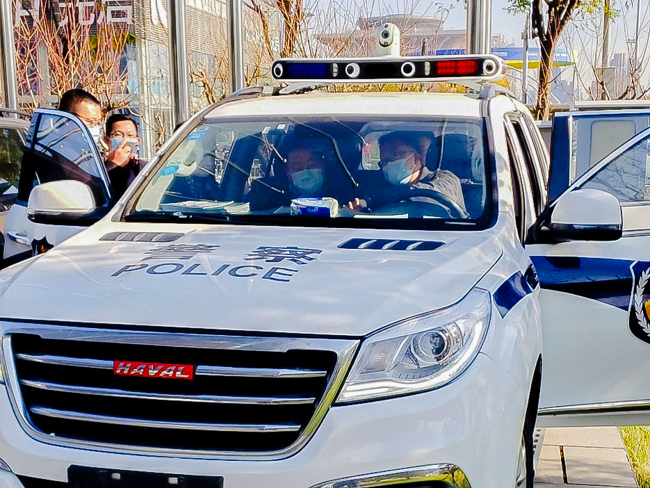 在展覽館外面,全新警車(chē)搭配海鄰科5G智慧警車(chē)巡控系統(tǒng),新型的車(chē)載警務(wù)智能裝備,分外引人注目,同樣吸睛無(wú)數(shù),前來(lái)參會(huì)的客商紛紛登車(chē)試駕體驗(yàn)。
