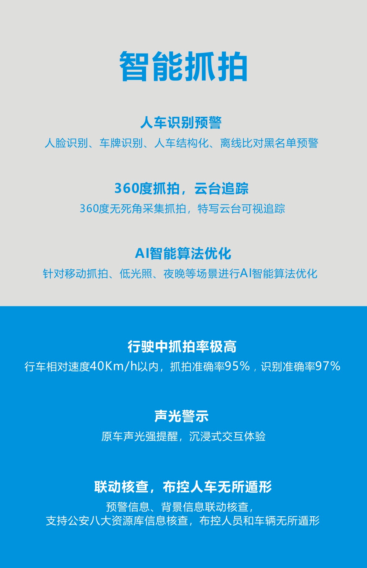 本次展會(huì)上,海鄰科創(chuàng)新推出的5G智慧警車(chē)巡控系統(tǒng)居于國(guó)內(nèi)領(lǐng)先水平,集多功能于一體,通過(guò)5G圖文傳輸,具備7路高清視頻采集、人臉識(shí)別、車(chē)牌識(shí)別、人車(chē)結(jié)構(gòu)化、離線比對(duì)黑名單預(yù)警、360度無(wú)死角采集抓拍、特寫(xiě)云臺(tái)可視追蹤、AI智能算法優(yōu)化、原車(chē)聲光強(qiáng)提醒、沉浸式交互體驗(yàn)、抓拍率極高等功能,人車(chē)聯(lián)動(dòng)核查,布控人員和車(chē)輛無(wú)所遁形。車(chē)載抓拍后臺(tái)比對(duì)實(shí)現(xiàn)車(chē)載、警務(wù)通預(yù)警,一點(diǎn)預(yù)警多端響應(yīng),支持車(chē)車(chē)聯(lián)動(dòng)、人車(chē)協(xié)同、信息共享、動(dòng)態(tài)封控,進(jìn)行精準(zhǔn)打擊。憑借創(chuàng)新高科技多功能、炫酷高顏值的優(yōu)勢(shì),大放警彩,驚艷全場(chǎng)。