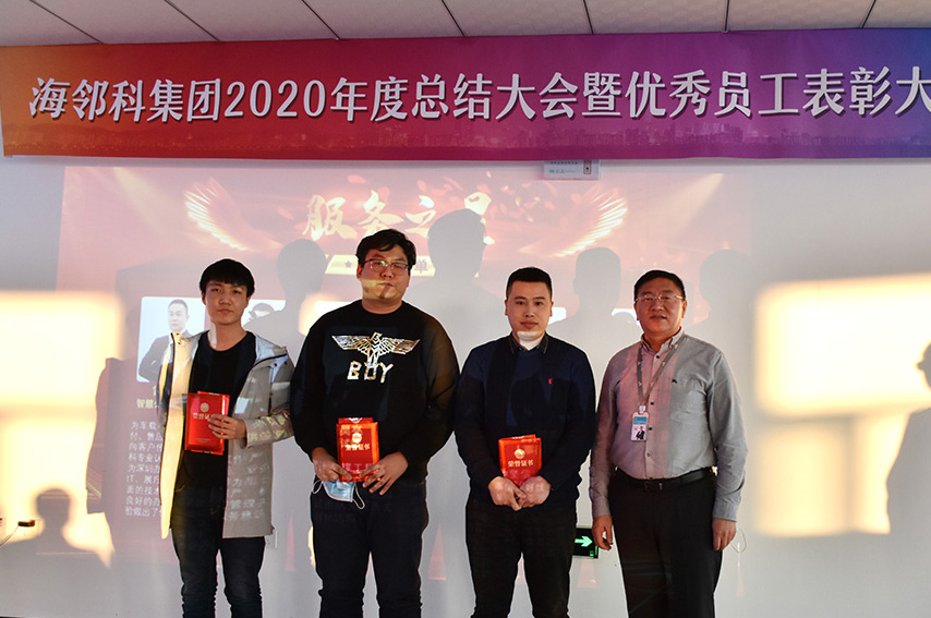 會(huì)上,在激昂的音樂(lè)中,公司領(lǐng)導(dǎo)為在2020年度工作中表現(xiàn)突出、取得優(yōu)異成績(jī)的優(yōu)秀員工和優(yōu)秀團(tuán)隊(duì)頒發(fā)了獎(jiǎng)狀和獎(jiǎng)品,勉勵(lì)大家勝不驕、敗不餒,繼續(xù)保持昂揚(yáng)的斗志,發(fā)揚(yáng)艱苦奮斗的精神,不負(fù)韶華,創(chuàng)新奮進(jìn),取得更大的成績(jī),使海鄰科發(fā)展再上新臺(tái)階。