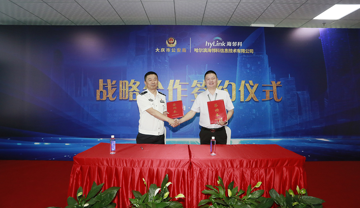 今年以來,海鄰科公司捷報(bào)頻傳,6月25日,海鄰科再傳喜訊,大慶市公安局與哈爾濱海鄰科信息技術(shù)有限公司在哈爾濱市深哈產(chǎn)業(yè)園正式簽署《戰(zhàn)略合作協(xié)議書》。大慶市副市長、市公安局黨委書記、局長史衍芳,海鄰科董事長兼總裁張海軍出席簽約儀式。